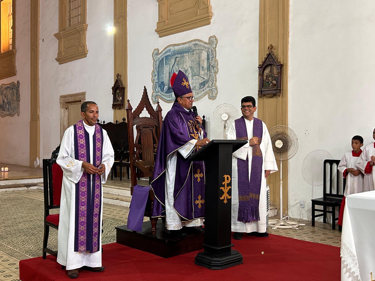 A acolhida foi conduzida pelo Pe. Roney, o Cura da catedral, enquanto a celebração foi presidida por Dom Sebastião Duarte, bispo da diocese de Caxias do Maranhão. A missa contou com a concelebração do Pe. Everaldo, pároco e vigário geral da Arquidiocese, e do Pe. Rios, reitor do Seminário São José.